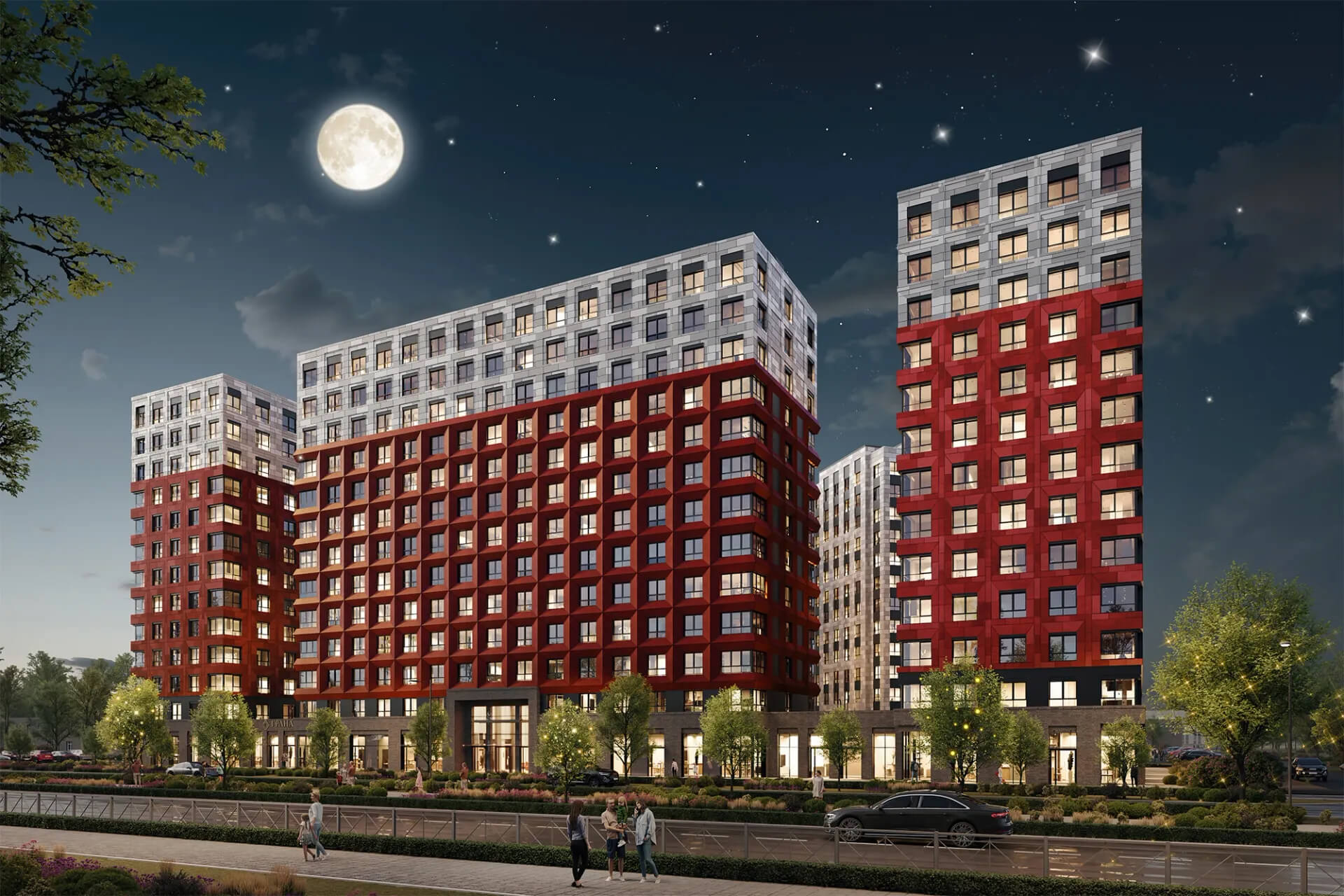 Используемые материалы и решения — вентилируемые фасады, крупные витражные окна, продуманные входные группы — гарантируют прочность и долговечность комплекса. Двухцветные, двусветные холлы, визуально связующие пространство двора и улицы, придают проекту цельность и сбалансированность. Сквозной доступ к дворовому пространству позволяет обеспечить естественное освещение и визуальные связи между жилым комплексом и окружением.