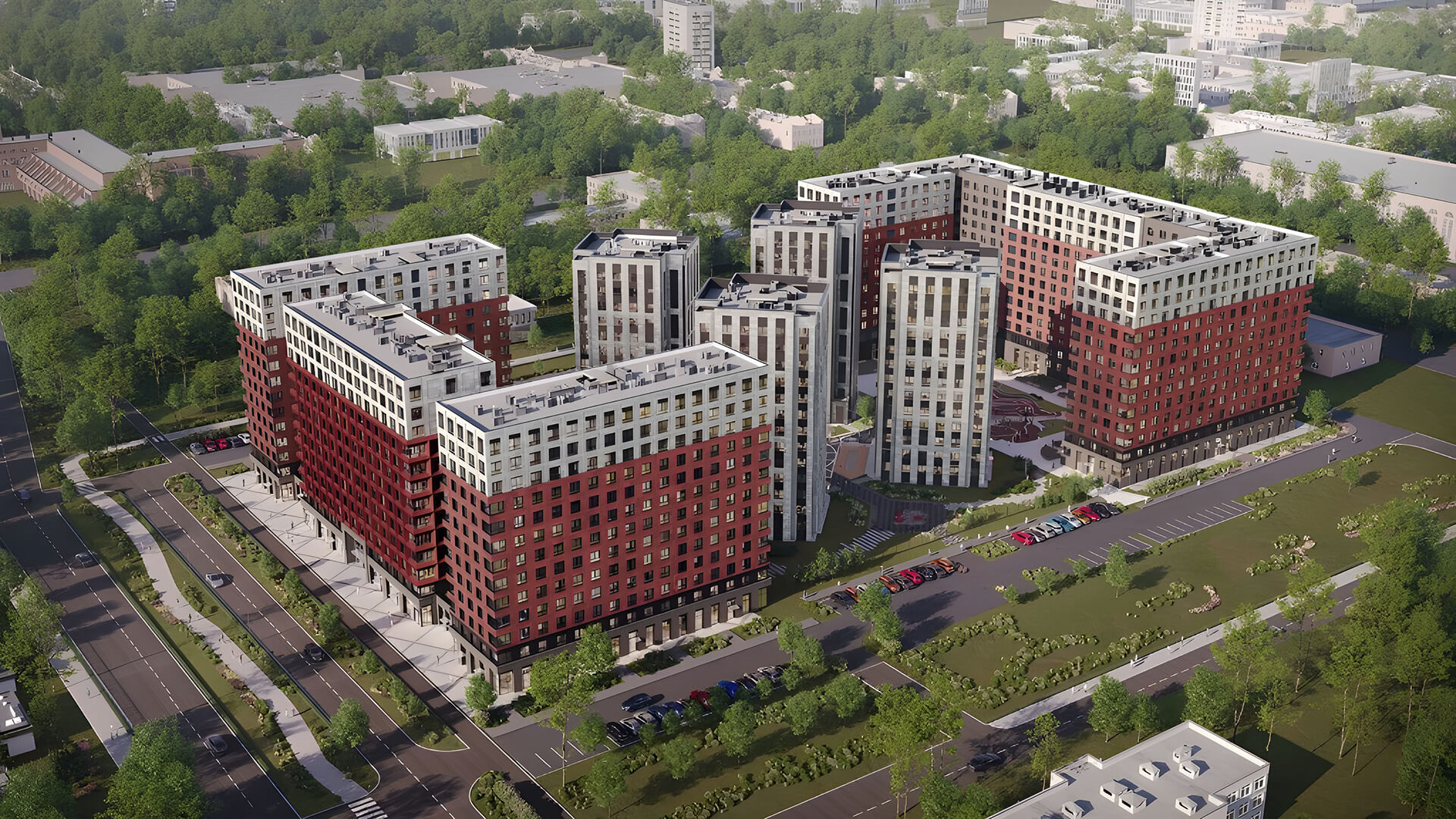 Используемые материалы и решения — вентилируемые фасады, крупные витражные окна, продуманные входные группы — гарантируют прочность и долговечность комплекса. Двухцветные, двусветные холлы, визуально связующие пространство двора и улицы, придают проекту цельность и сбалансированность. Сквозной доступ к дворовому пространству позволяет обеспечить естественное освещение и визуальные связи между жилым комплексом и окружением.